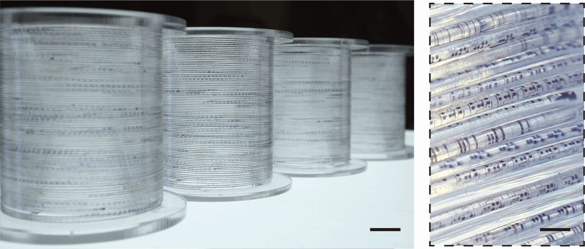 成卷“纤维芯片”和局部细节照片