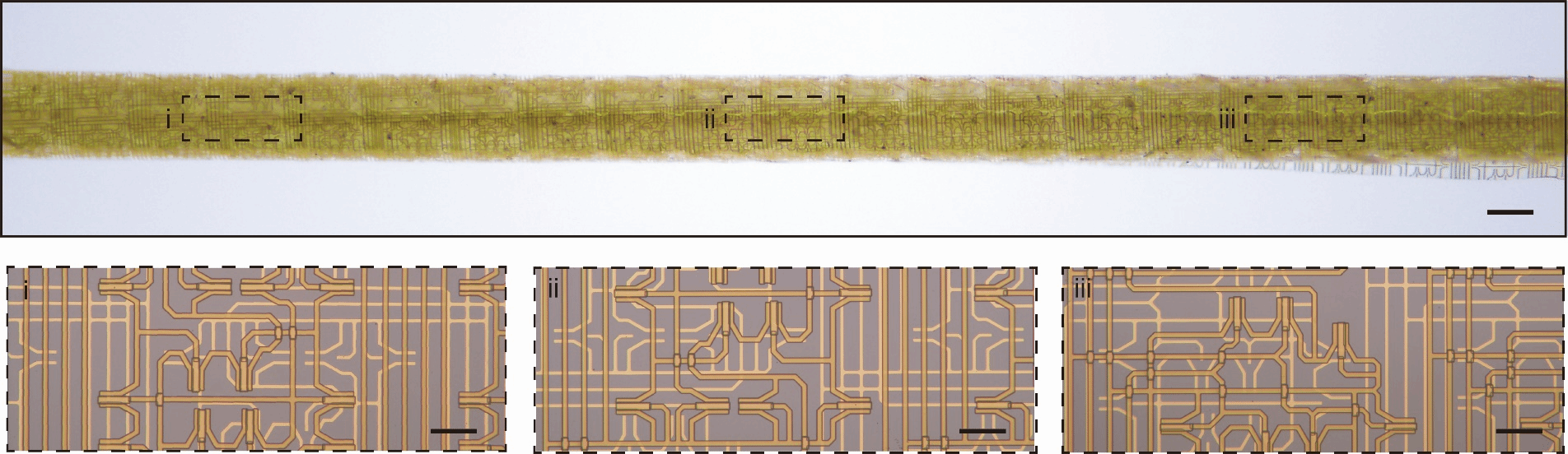 “纤维芯片”及其内部局部电路的光学照片
